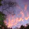 翌日の夕方,高い雲がきれいな赤紫色に変わりました。色の変化や濃淡によって白い雲には見られない立体感がでています。(右写真)高積雲でしょうか。