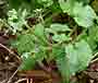 (写真左)このワサビは野生種なので根茎は大きくなりませんが,葉や茎はワサビ特有の辛味があって,生食やお浸しにすると美味です。 |