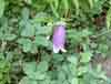 今年はじめて見たホタルブクロの花です。葉も茎も十分成長しておらず高さ20cm位,いかにも重そうにクロマメノキの間から花だけが頭を出しました。(写真左)