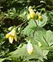 8月*1 (上旬)今年はソバナの生育に適した気候だったのか,枝葉がよく伸び,花も多く咲きました。 開花後,1週間以上花の色が褪せないので,次々に開く花がかさなり,灯数の多い大きなシャンデリアが点灯したようになります。(左写真)(中旬)キレンゲショウマ・・・自生地は四国・九州・紀伊半島の深山ですが, 環境が合うのか小さなポットの苗が大きく育ち,種子が落ちて増えていきます。 1属1種,明治中期に四国で発見されました。自生地が減り現在は絶滅危惧種になっています。(右写真) |