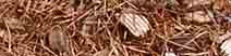 (上)小さな木片(チップ)とカラマツの落葉を混ぜて敷きます。こうするとチップ,カラマツ共に単独のときよりも土との馴染みがよくなり,飛散し難くなります。