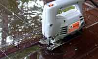 アクリル板 壁面の結露,水の滲み出しに備えてアクリル板の道床です。木材の様に水を吸うことがなく薄い板でも強度と耐久性があります。 <製作メモ> ジグソーで5mm厚,畳3枚分のアクリル板を400余枚にカットします。切断する長さが長くジグソーが威力を発揮しました。 写真/白く写っているのは林の空とカットする罫線です。 (念のため) |