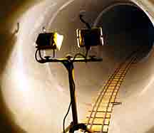 外部から差し込む光でレールは光って見えますが枕木など軌きょう全体はほとんど見えません。トンネル内部を照明で明るくしてみました。 写真のように,雨天が続かなければ内部はほぼ乾燥状態が保たれています。 |