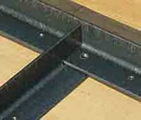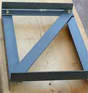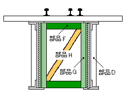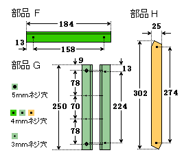 横桁枠はアングル材(部品F,部品G)で長方形の枠を作り,対角線の位置にフラットバー(部品H)を入れた単純な形です。ネジも4本ですが主桁ほどの力を受けないので強度的には十分だと思います。 |
