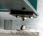 る箇所です。身近にある鉄道橋を至近距離で観察できるのは東京近辺では都心部の山手線や中央線の高架下に限られます。下の道路からプレートガーダー橋を見上げることになります。 観察できるのは橋台と支障の部分が主で橋の上部や橋桁全体はよく見えません。そのような事が橋桁の支え方にこだわってしまった理由の1つ です。 (左写真)鉄橋の中では 錆が出やすく,分解しないと塗装しにくい箇所が支承部分です。ステンレス,アクリル,塩ビを組み合わせて腐食を防ぐようにしました。 |
