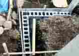 (2)橋台(ブロック工事) 15cm重量ブロック4段積みです。 土圧に耐えるように,1段おきに横筋を通しています。
