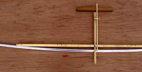 曲率測定器の製作 上の関係式で曲線レールの半径を測定するには,糸を張って 直線Lを作り,ノギスで距離Dを測ればよいわけですが,いちいち糸とノギスを使うのは手間が大変です。そこで,簡単に測定できる器具を作ってみました。 (1)