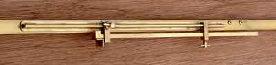 右写真のように,長さL(=50cm,100cm,200cmに可変可能)の真鍮の厚板に測定棒を直角に取り付けて距離Dを読み取る構造です。