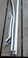 ガードレールの製作3インチ半ゲージ/外軌に合わせてガードレールを作ります。A形ガードレールと呼ばれる昔のタイプで,両端部は角を付けて鋭く曲げます。 レールを鋭く曲げる方法は,曲げる箇所の内側の底部に腹面近くまで切り込みを入れ,バイスに挟んで素手で曲げても綺麗に曲がります。 (写真)比較するために,加工済みの外軌とガードレールを直線レールと並べてみました。外軌は円弧にS字形を重ね合わせた線形です。 こんな形の曲線レールを径間誤差1mm以内に抑えて作るので,数式や図は役に立たずノギスを使った現物合わせに限ります。 |
