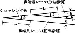クロッシング角θを正しく削ることが必要なので,削る長さL をクロッシングの番数から近似計算して,正しい角度に近付けるようにしました。