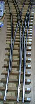 (4) ガードレールの取り付け![]() そばな高原鉄道の5インチゲージ車輪はバックゲージを119mmとしています。この基準はかなり厳しい値なのでバックゲージが118mmでも許容するようにガードレールを取り付けました。 (5) ポイント部の組立