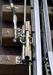 操作部分です。バネが無くても操作器の構造変更によりテコの原理でトングレールは容易に束縛状態から抜けだすことが出来ます。 |
