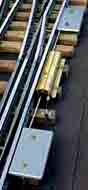 ●フランジの横圧がわずかでもトングレールは軽快に動かなければなりません。そこで5本のトングレールを一度に動かさず,2回に分けて動かします。そのためにツメが2組分並んでいます。 |