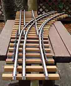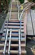 線に進む分岐線(鉄道用語)として使用します。基準線ではレール面の凹凸もそれ程気にならず減速せずに通過 しても問題がなさそうです。 |