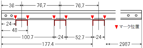(注) 3インチ半用の中間軌条は最後に取り付けますので,マーク付けは必要ありません。 |