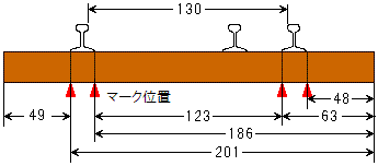 (4) 枕木のマーク付け(レールを取り付ける位置)