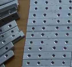 でも可),ボール盤,グラインダー,金やすり ●材料費・・・・アルミ平棒(厚2×幅10mm×長2000mm)価格300円 ●製作時間(継ぎ目板145枚製作で)・・・・平棒カット約3時間,角のアールとり約8時間,穴あけ約5時間 ●余談・・・・継ぎ目板とネジ類の合計は1箇所当り52円 (鉄製市販品の1/3の価格)です。同じものを多数作るのには根気が必要ですが,一度にまとめて作ってしまうと同一規格のものが効率よく作れます。 |