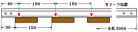 (3) レールのネジ固定位置にマークします。