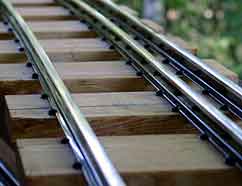 レールの枕木への取付けは木ネジ(径3mm,長さ10mmのワッシャーヘッド)を使いました。 |