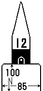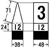 製作する丙号距離標は右図のようになります。 右図の文字「12」と「3」は起点から の距離を示すもので,この標の位置が12km+0.3kmの地点であることを示しています。