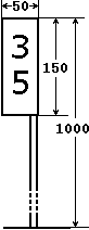 そばな高原鉄道の表記方法で,数字「35」は起点から35mの位置を示しています。 文字の字体と大きさは他の距離標も参考にして,少し細目で小さくしてみました。 支柱は建材のアルミレールを使い地面に直接突き刺して立てる最も簡単な方法です。 |