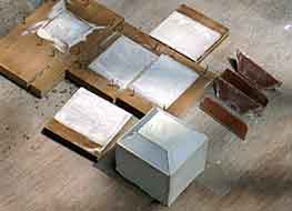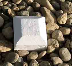 (2) 白い標識なので白色セメントを使用しました。 (3) 型枠をはずしてみると,白さが足りないので白色のペンキを塗りました。 |