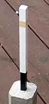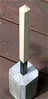 (3) 完成した車両接触限界標 甲号 底辺は4.8cm角,道床に置くために高さを5cmに増し ,重量も重くしました。それでも「甲号」はバラストに負けそうです。 |