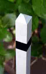 乙号 単純なデザインの「乙号」は柱の角をシャープにカットし,はっきりした直線で白黒を塗り分けると線路標の感じが強くなると思います。 |