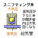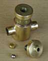 扉は上にあげる縦開きの設計でしたが,部品配置を変えてスペースができたことと投炭は横開きの方が良さそうなので横開きにしました。 取付金具が圧力計の取付けも兼ねられることと,ボイラーにネジを切らず外火室後板のプラグの穴を利用できることも変更した理由です。 ●排水弁 ボイラーに取付ける弁にはすべて高圧がかかります。この弁も頑丈なニードルバルブ(既成品)です。 ボイラーの最も低い位置に取り付けて排水パイプは運転室の床下に長く伸ばします。排水時には排水口にホースを接続し容器に受けます。 ●安全弁 ステンレス球とバネを使ったポップ安全弁(既成品)と呼ばれる形式で,7kg/cm2に調整して2個取り付けます。 |