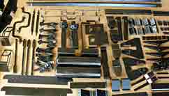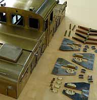 ミッチャクロンの使用だけでなく,エアブラシはこの機関車の塗装で初めて使用する器具です。 これまではすべてスプレー缶の中から色を選び塗装していましたが,数の多い自動車用を含めても色の数に限界があります。 国鉄機関車の色など代表的な色は調色塗料(ラッカー)が市販されており,これらの中から色を選びエアブラシで吹きつけることにしました。 上写真 エアブラシでの塗装がどの様になるのか,テスト的な意味も込めて異なる材質,形状のものを集めてきてはじめての吹き付けをしました。 分解できるところは分解し,分解できない部分は隙間への浸透状況も調べました。写真はミッチャクロン2度吹き後で薄い塗膜が光を反射しています。ニス塗りの様な感じになりました。 |