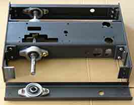 カーブでは左右の車輪は異なる回転速度になります。差動機を取り付けた台車枠は特殊な形です。 |