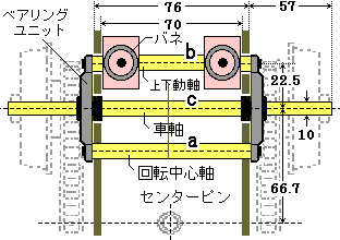 軸箱を軸箱守で上下にスライドさせるより製作が簡単で,すでに乗用客車の車軸受けの構造で試みてい