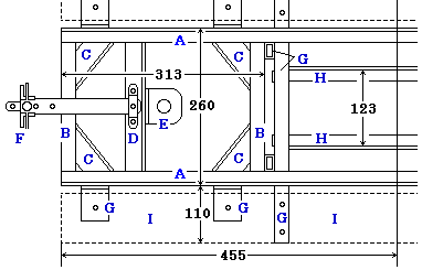 D 中心ピン支持梁 E 中心ピン支持金具 F 連結器 |