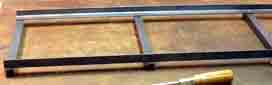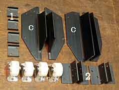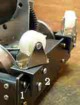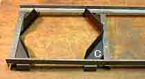 車台枠は鉄アングル材のネジ止めで作ります。台車の旋回性能の向上を図って「旋回輪」をもつ構造を考えてみました。 |