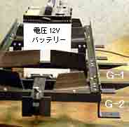 (写真左) 足置き板 I とバッテリー据え付け台 が完成した状態です。バッテリーは台(アングルH)に載せるだけで特に固定はしません。 |