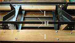 G 足置き板取付金具 H バッテリー据付け台 I 足置き板 |