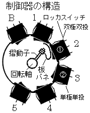 抵抗制御と電子制御を比べると古い技術は構造が単純なので製作が容易と思いましたが,直接制御に使う機械的なコントローラーを作るのは大変でした。 |