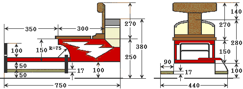 製作する車体の特徴はトンネル通過のために低い位置に運転席を設けてあることで 一方,楽な運転には姿勢だけではなく動作に制約を受けない条件も必要で,車体を長くして身体を前後に動かし易くし,足の置き場所も広くとりました。(トンネル通過時に,座高の高い人は足を引けば頭を下げやすくなります。) (注) 車体の外側に突き出している足置き板は地面スレスレです。これを逆手にとって,橇のようなこの板を脱線の際のダメージ軽減に生かせないか検討しています。 |