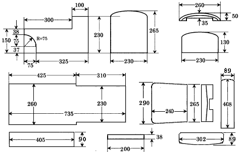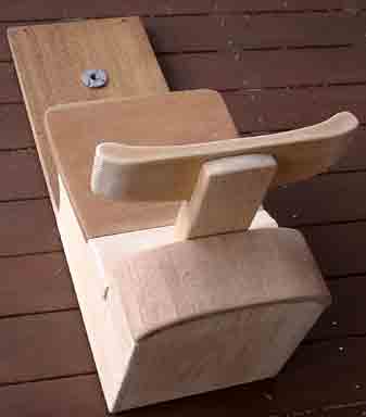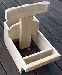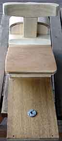屋根と座板・・・メンテナンスと物入れに使えるように,嵌め込むだけで取り外しが出来ます。 (写真)角にアールを付け,サンドペーパーがけも済んだ塗装前の車体です。 樹種により木地はかなり異なります。