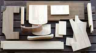 曲面部分を削り出す材料は手持ちの板材の中から柔らかくて均質な性質のラワンと2×4材(SPF中の適する樹種)としました。