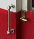 (左写真) 油性ステインを塗布後,透明ニスで上塗りして,5mmステンレストラスネジ6本で取り付けました。 |