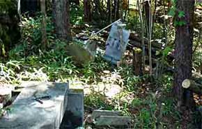 (左写真)木を伐り下草を掃った駅舎建築場所の斜面です。手前のコンクリートの台は高架線1の終端で,線路をこの位置から駅舎内のホームに続ける計画です。