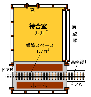 (上図)駅舎の建設場所の地形と屋根の形,基礎配置のプランです。
