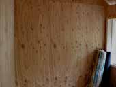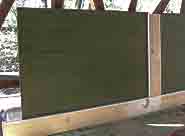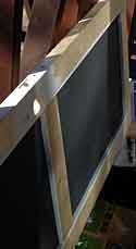 ● ガラス戸を木枠に載せ,この木枠に窓枠の縦桟を取り付けました。(写真左) |