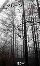 屋根に損傷を与えずに大木を伐る方法は巨大クレーンで木を鉛直に吊り上げて適当な長さの所を順次切りながら下におろします。 |