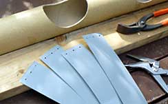 材料 紙筒(長さ948mm,外径84mm),背板(長さ1190mm,2×4材),カラー鉄板(巾60mmにカットして使用)
